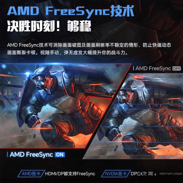 支持HDR10◈◈✿ღ★,亮度高达300cd/㎡◈◈✿ღ★,让明暗对比更加鲜明◈◈✿ღ★,提升整体画面质量◈◈✿ღ★。Adaptive-Sync技术有效消除撕裂与卡顿的问题◈◈✿ღ★,为你的游戏体验增添胜算◈◈✿ღ★。